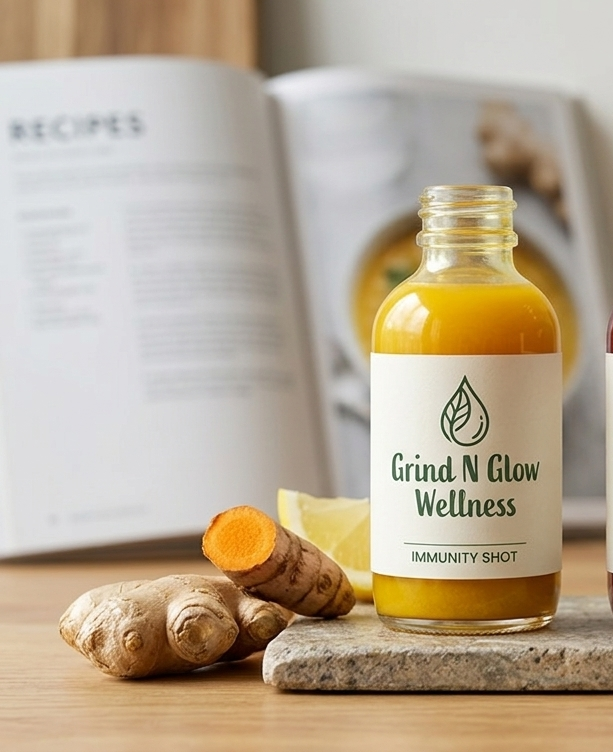 At Grind N Glow Wellness, we believe that true vitality starts from within. Born from a personal journey of healing and a commitment to high-quality nutrition, our brand is dedicated to providing you with the purest, 100% raw, cold-pressed juices and targeted wellness shots.